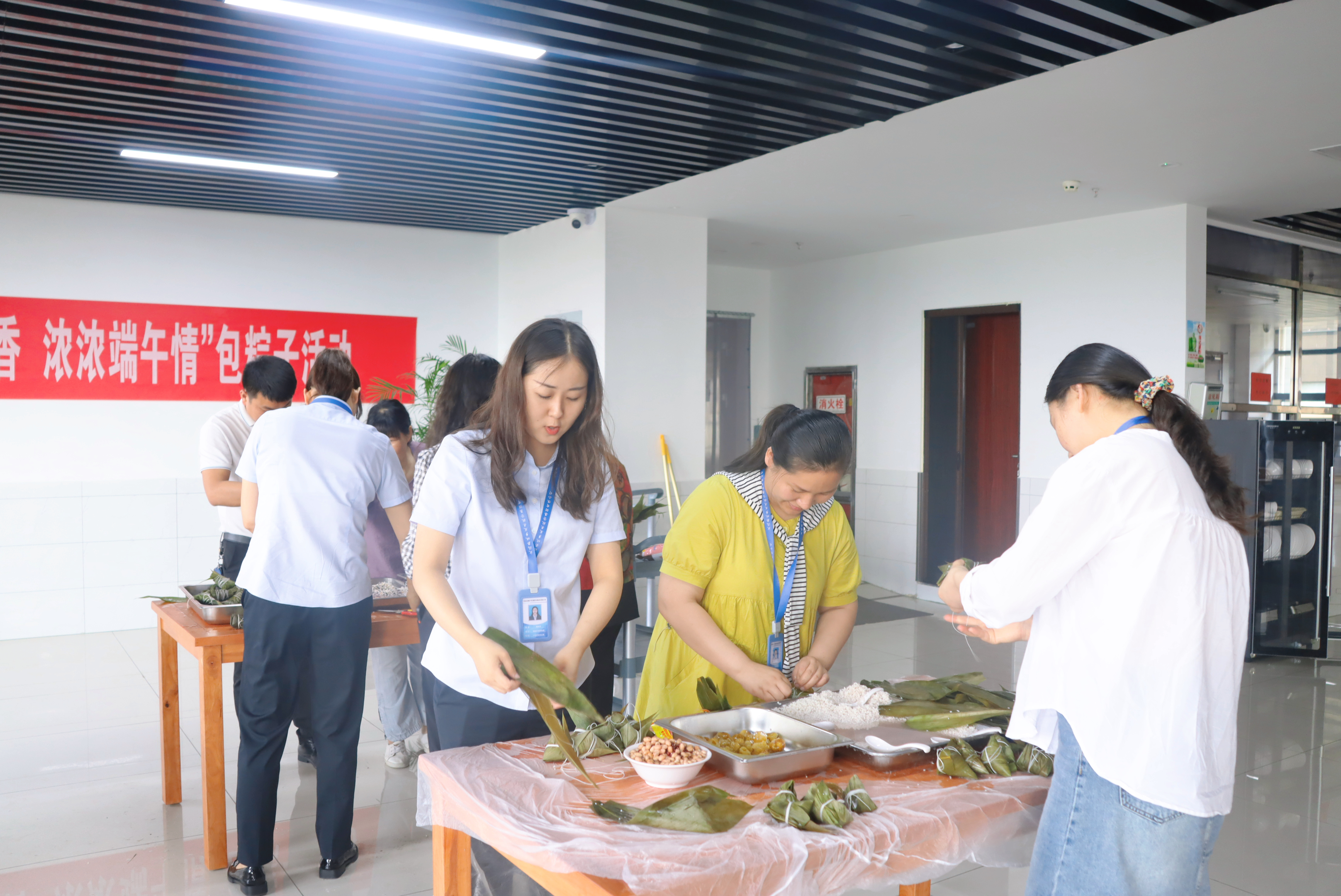 四是組織開展“悠悠粽子香,濃濃端午情”包粽子活動。大家在食堂拿粽葉、做漏斗、填糯米、包裹、捆綁井然有序地進行著,一片片清香的粽葉、一粒粒晶瑩的糯米,轉(zhuǎn)眼就變成一個個誘人的粽子,大家一起包粽子,討論端午節(jié)的傳統(tǒng)習(xí)俗,感受傳統(tǒng)飲食文化的韻味和濃濃的節(jié)日氛圍。